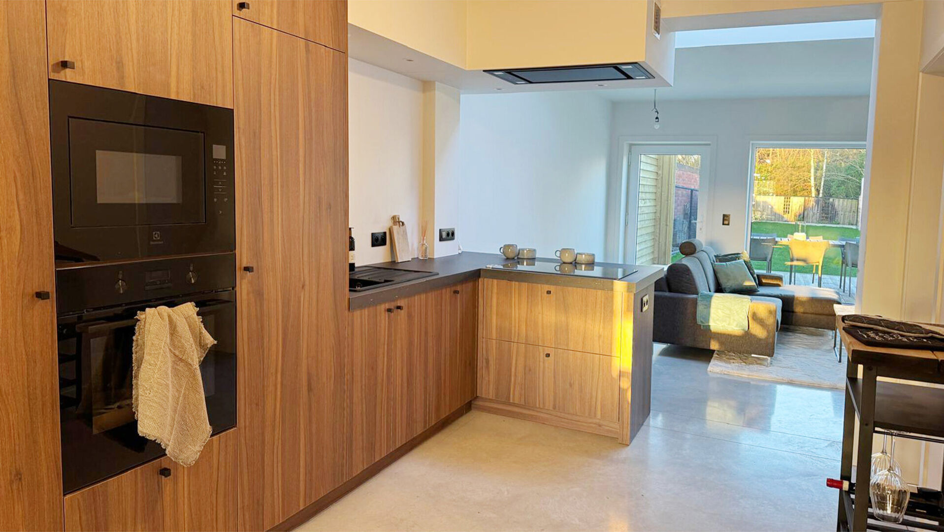 We enter this charming home through a large entrance hall equipped with a guest toilet, bicycle storage and a charging point. We then move on to the spacious and bright living area, which is divided into a cosy sitting area, dining area and an open kitchen. The kitchen is fitted with all modern comforts and also offers a beautiful view of the terrace and garden. At the front, there is an additional multifunctional room that can be used as an office or extra bedroom. The wall can even be removed with a small adjustment. There is also a practical storage/laundry room with connections for a washing machine and dryer, as well as access to the storage cellar located just off the kitchen.