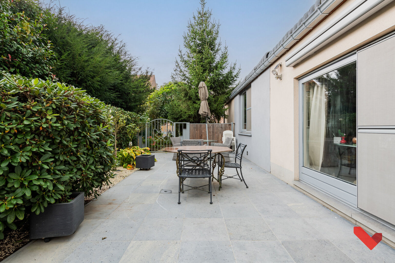 The 629 m² plot is surrounded by greenery, allowing you to fully enjoy privacy and tranquility. The garden offers numerous possibilities: from a play area for children to an outdoor lounge for relaxation after a long workday. Additionally, there is a delightful terrace connected to the garden, the perfect spot to unwind, bask in the sun, or enjoy dinner with friends and family while overlooking the beautiful garden.