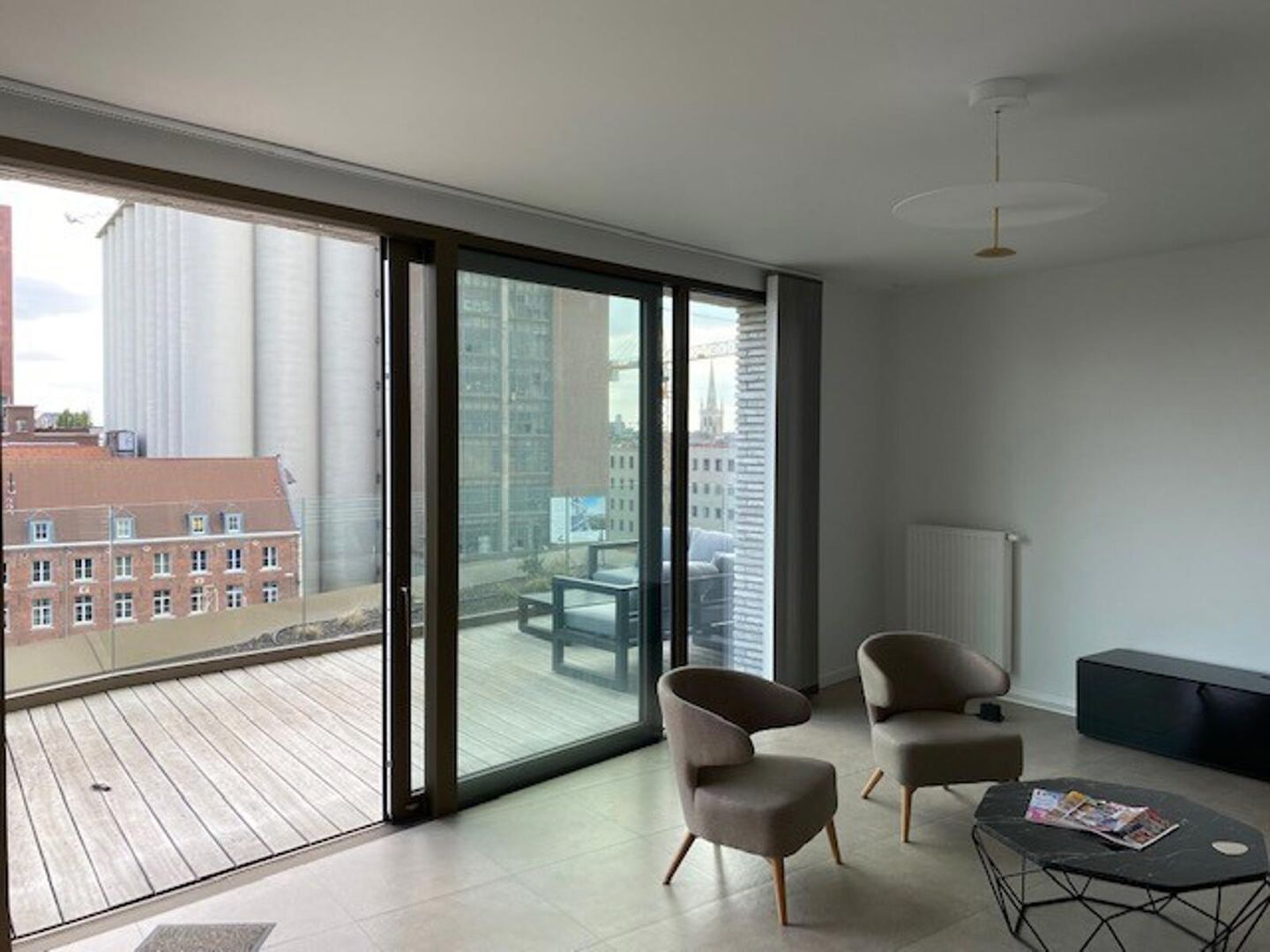 Luxueux appartement de 2 chambres avec bureau séparé situé dans le prestigieux nouveau projet immobilier « SKY one ». L'appartement, situé au cinquième étage, vous accueille dans une oasis de luxe et de tranquillité au bord du Vaartkom rénové à Louvain. Avec une terrasse orientée au sud, meublée et équipée de tout le nécessaire, cet appartement ne manque de rien.