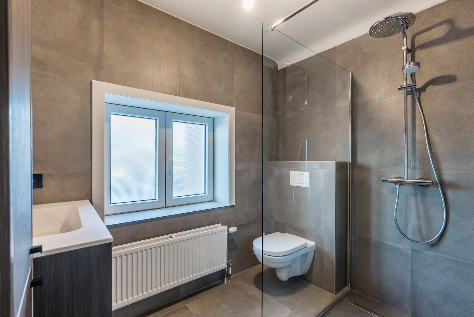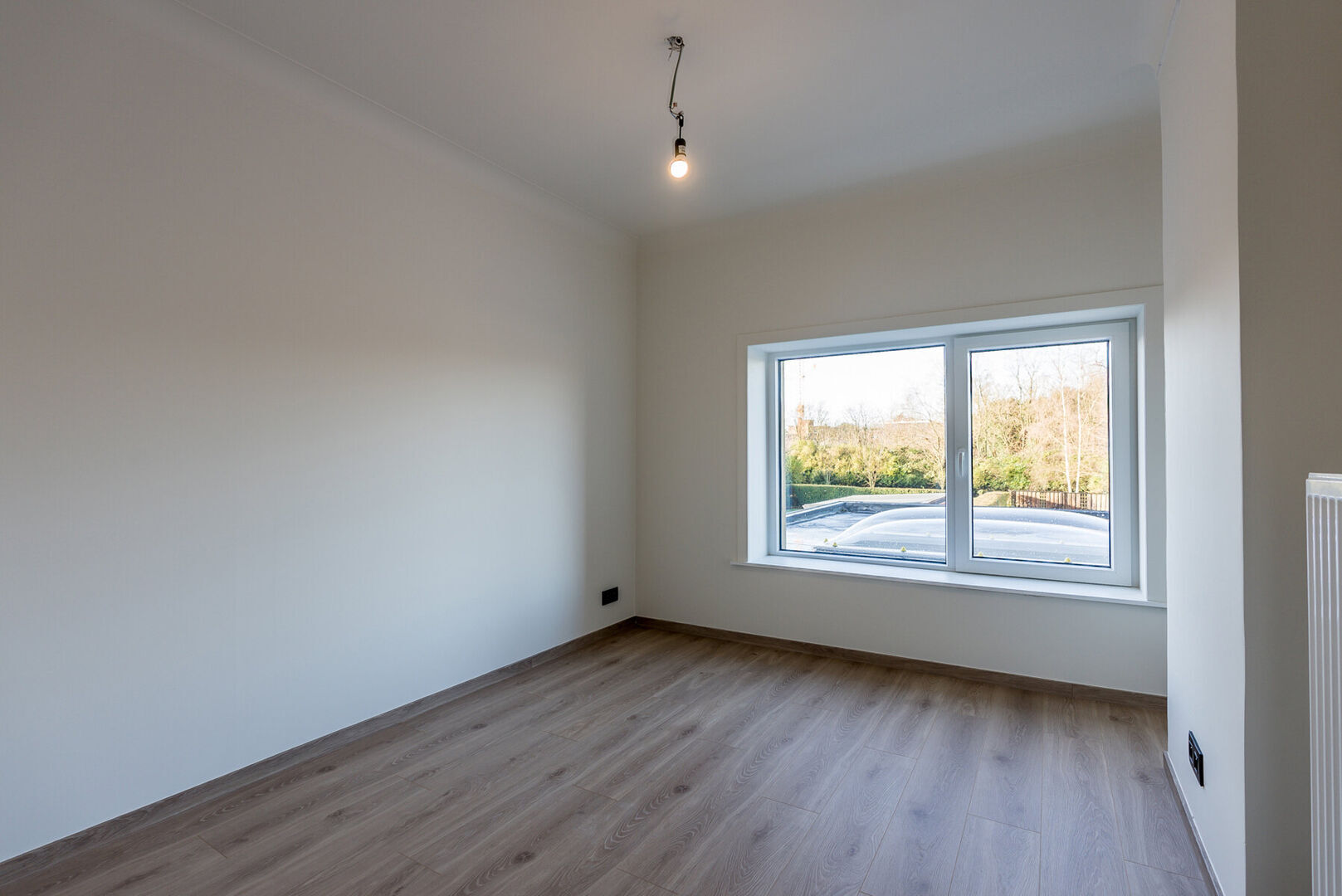 Nous pénétrons dans cette maison de caractère par un grand hall d’entrée équipé d’un WC invités, d’un local à vélos et d’un point de recharge. Nous poursuivons ensuite vers le vaste séjour lumineux, aménagé avec un salon chaleureux, un coin repas et une cuisine ouverte. La cuisine dispose de tout le confort moderne et offre également une magnifique vue sur la terrasse et le jardin. À l’avant se trouve encore un espace polyvalent pouvant servir de bureau ou de chambre supplémentaire. Même la cloison peut être supprimée moyennant un léger aménagement. Il y a également un pratique débarras/buanderie avec raccordements pour machine à laver et sèche-linge, ainsi qu’un accès à la cave de stockage située à proximité immédiate de la cuisine.