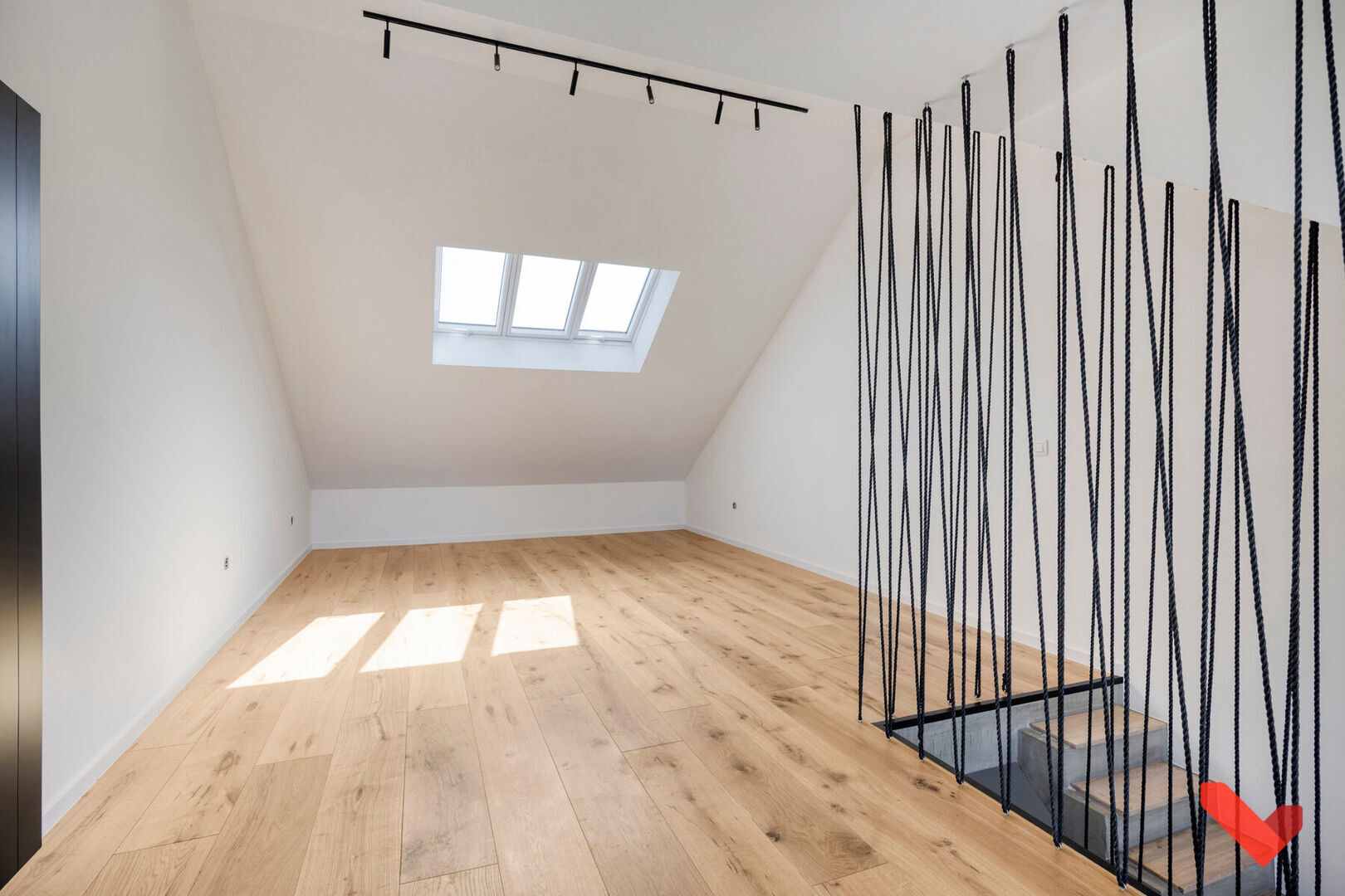 Au premier étage, vous trouverez deux chambres et une salle de bains moderne avec douche à l’italienne, réalisée avec des matériaux contemporains et une finition élégante. Le grenier a été aménagé en troisième chambre avec une grande lucarne, apportant beaucoup de lumière et créant une atmosphère agréable. La maison dispose également d’une cave, idéale pour un espace de stockage supplémentaire.