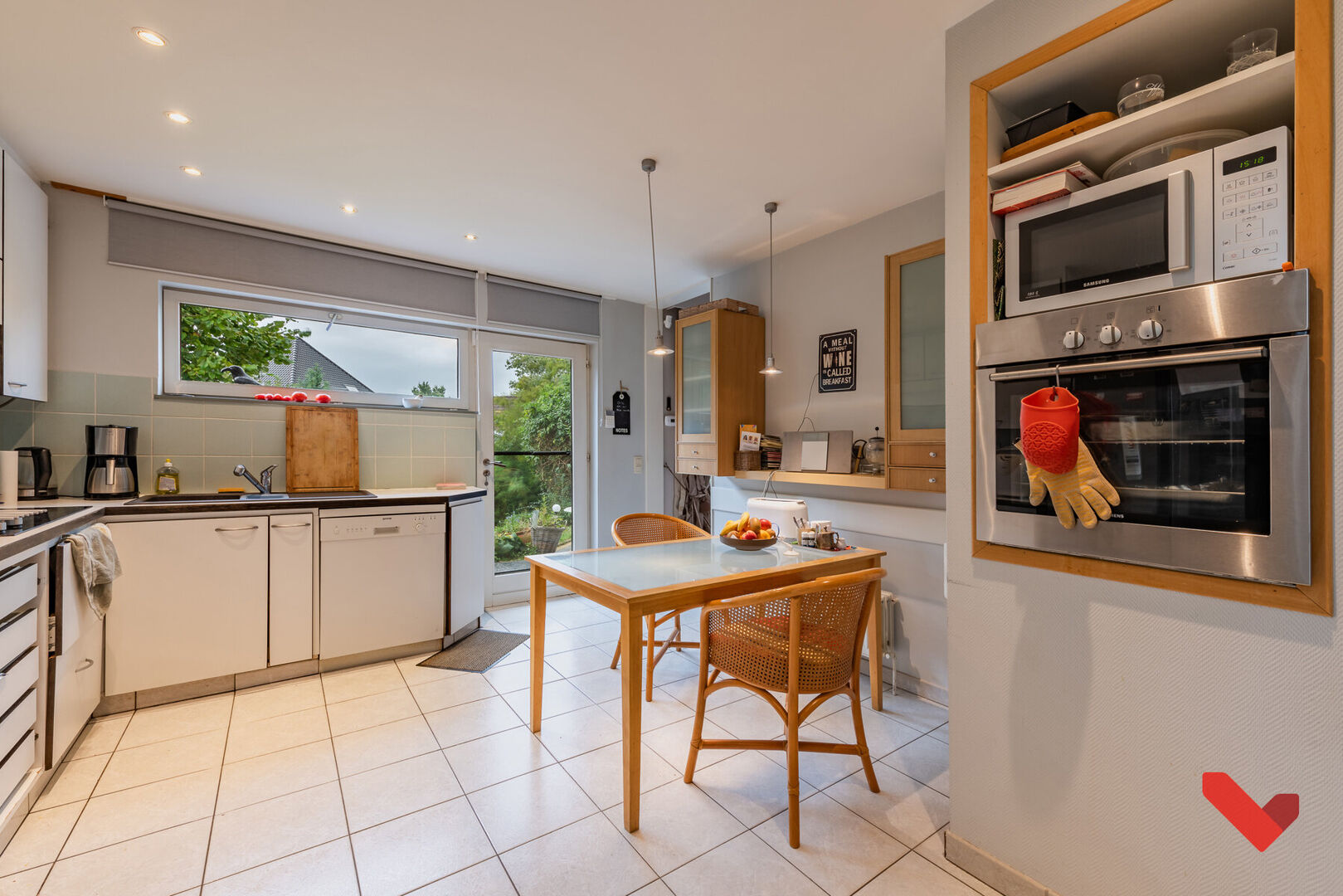 **Cuisine moderne et spacieuse :** La cuisine moderne entièrement équipée offre non seulement toutes les commodités nécessaires, mais donne également un accès direct au jardin. Profitez de votre café du matin avec vue sur la verdure ou organisez un barbecue convivial avec des amis et la famille.