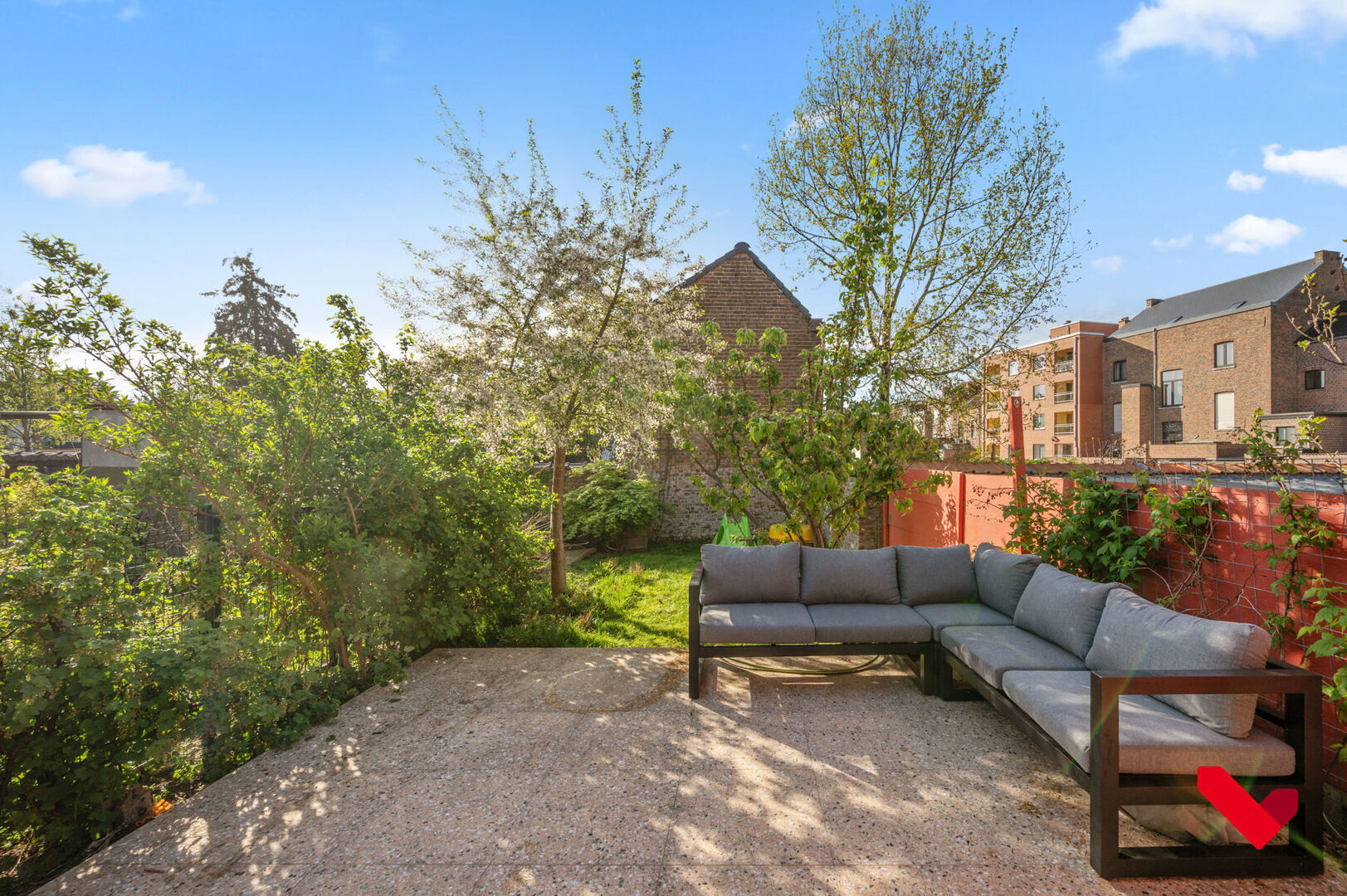 • Jardin orienté sud offrant beaucoup d'intimité, avec terrasse attenante et dallage continu