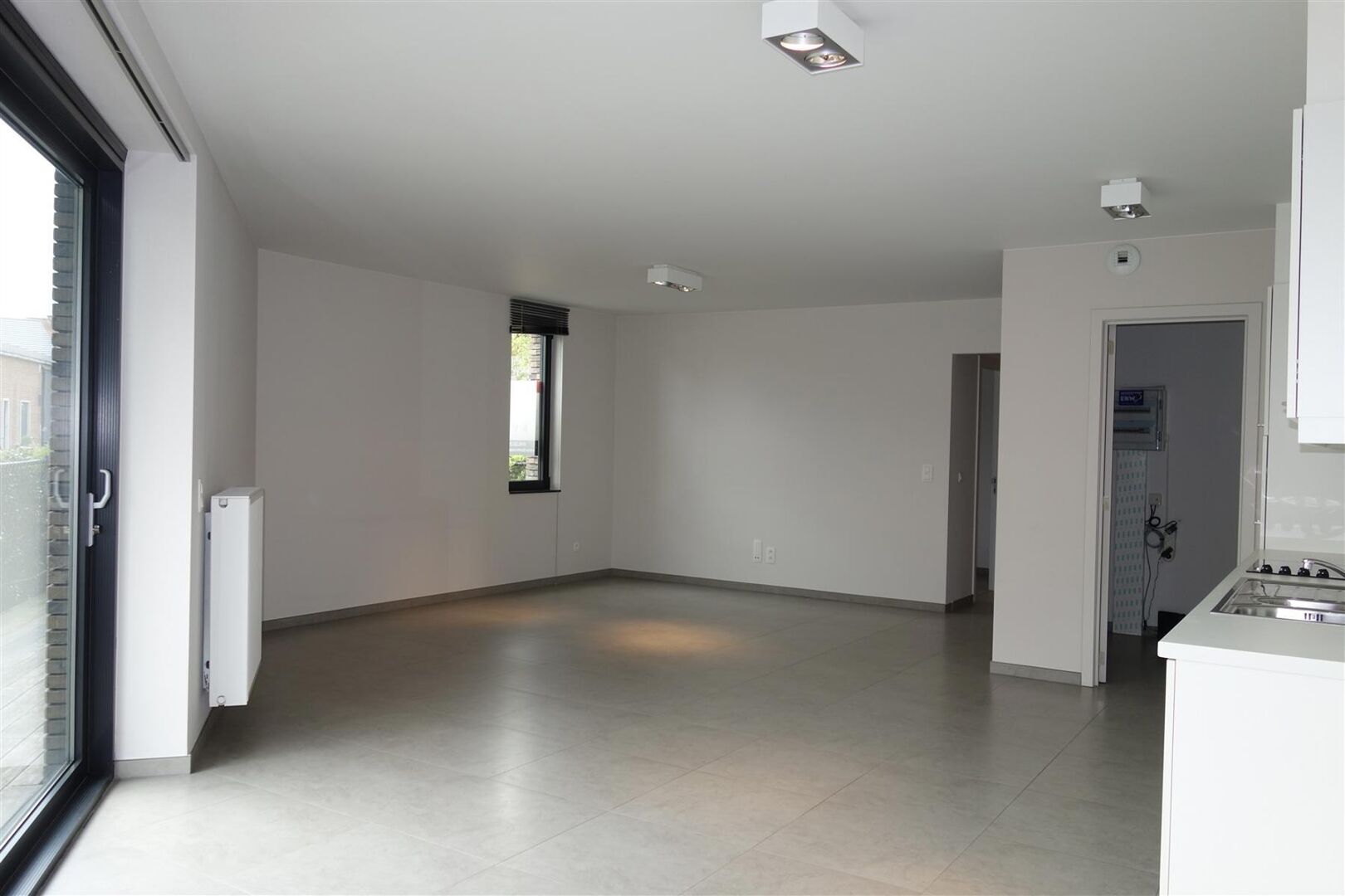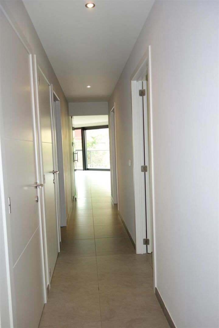 Appartement récent situé au rez-de-chaussée, avec une agréable terrasse ensoleillée, dans une rue très calme. L’appartement est prêt à être occupé et se compose comme suit : hall d’entrée avec couloir central ; à gauche, des toilettes séparées, un débarras et une salle de bains ; à droite, deux chambres.