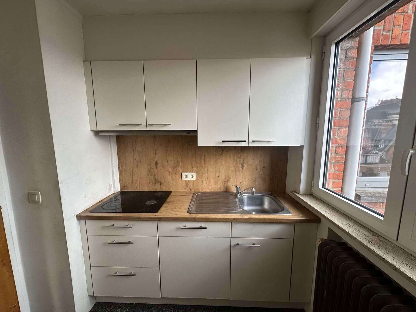 Via de centrale inkomhal betreedt u het appartement. Aan de linkerkant bevindt zich de gezellige, geparketteerde leefruimte, die geniet van een mooi uitzicht over het historische stadscentrum. Achteraan liggen twee volwaardige slaapkamers, evenals een aparte toiletruimte en een badkamer.