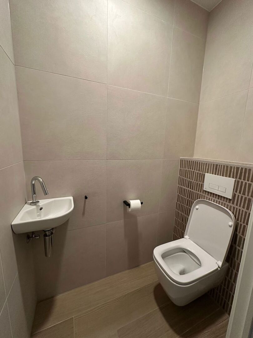 De centrale gang geeft verder toegang tot alle andere ruimtes in het appartement. Naast de 2 volwaardige slaapkamers is er een apart toilet en een badkamer met zowel bad als douche. Ook hier wordt comfort gecombineerd met aantrekkelijke materiaalkeuzes en fijne details zoals indirecte verlichting.