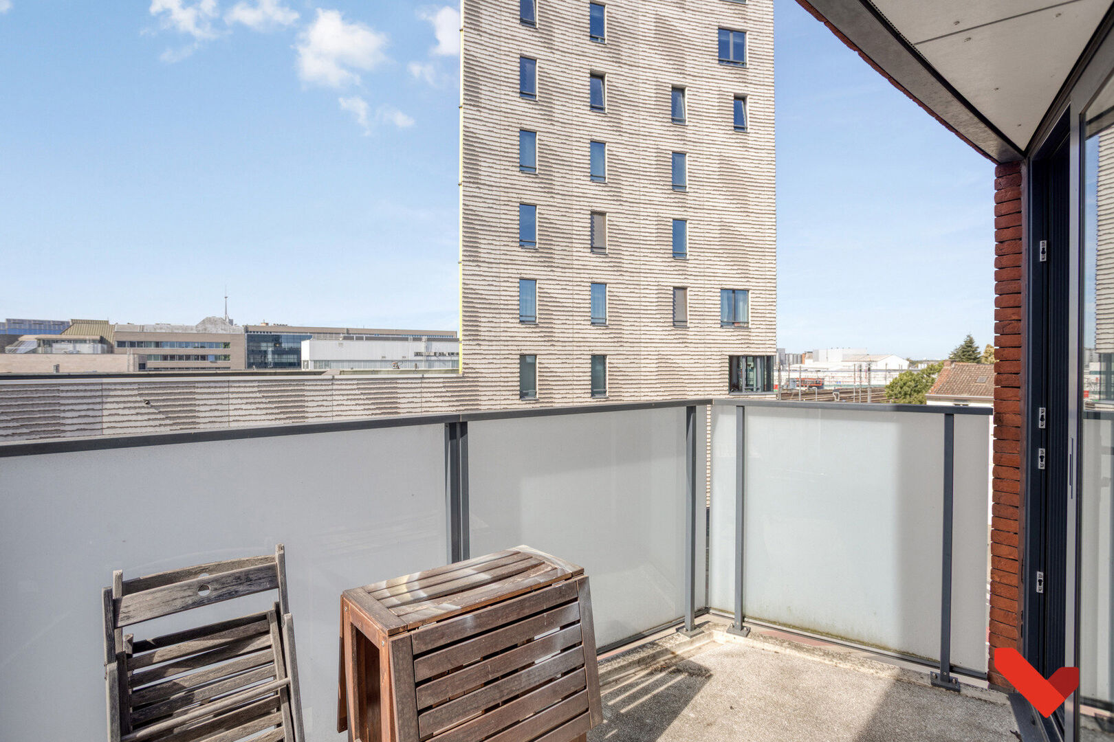 In Residentie Belle-Vue, vlak achter het station van Leuven, vindt u dit lichtrijke appartement met 2 slaapkamers.