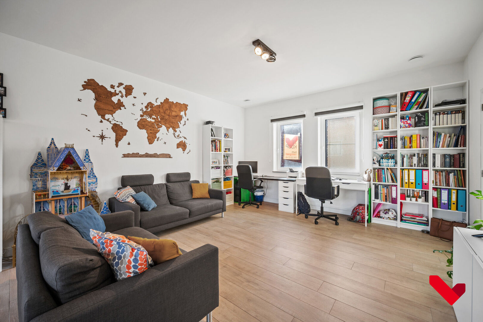 Binnenin verwelkomt de woning je met een lichte leefruimte met open keuken, ideaal voor gezellige familiemomenten en vrienden over de vloer. De functionele hal verbindt de verschillende ruimtes naadloos.