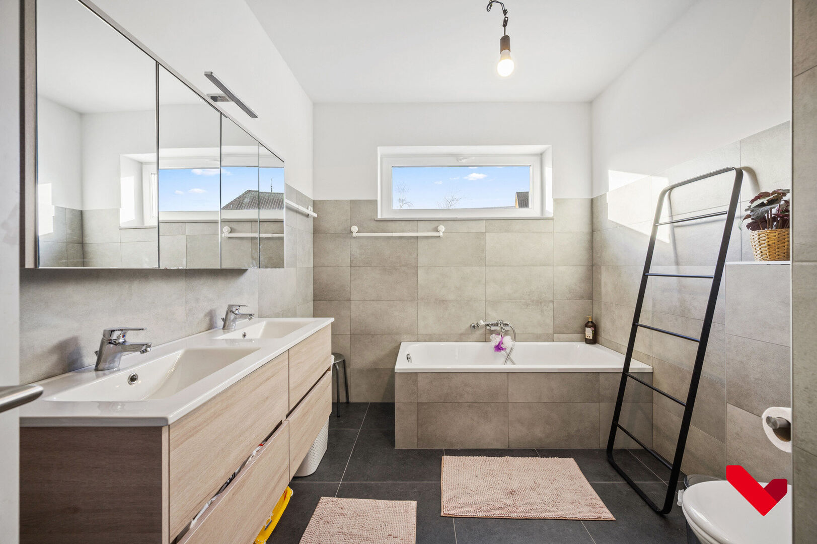 Op de verdieping vind je drie ruime slaapkamers, telkens met voldoende licht en comfort. De badkamer biedt zowel een ligbad als een douche – perfect voor het drukke gezinsleven én voor rustmomenten.