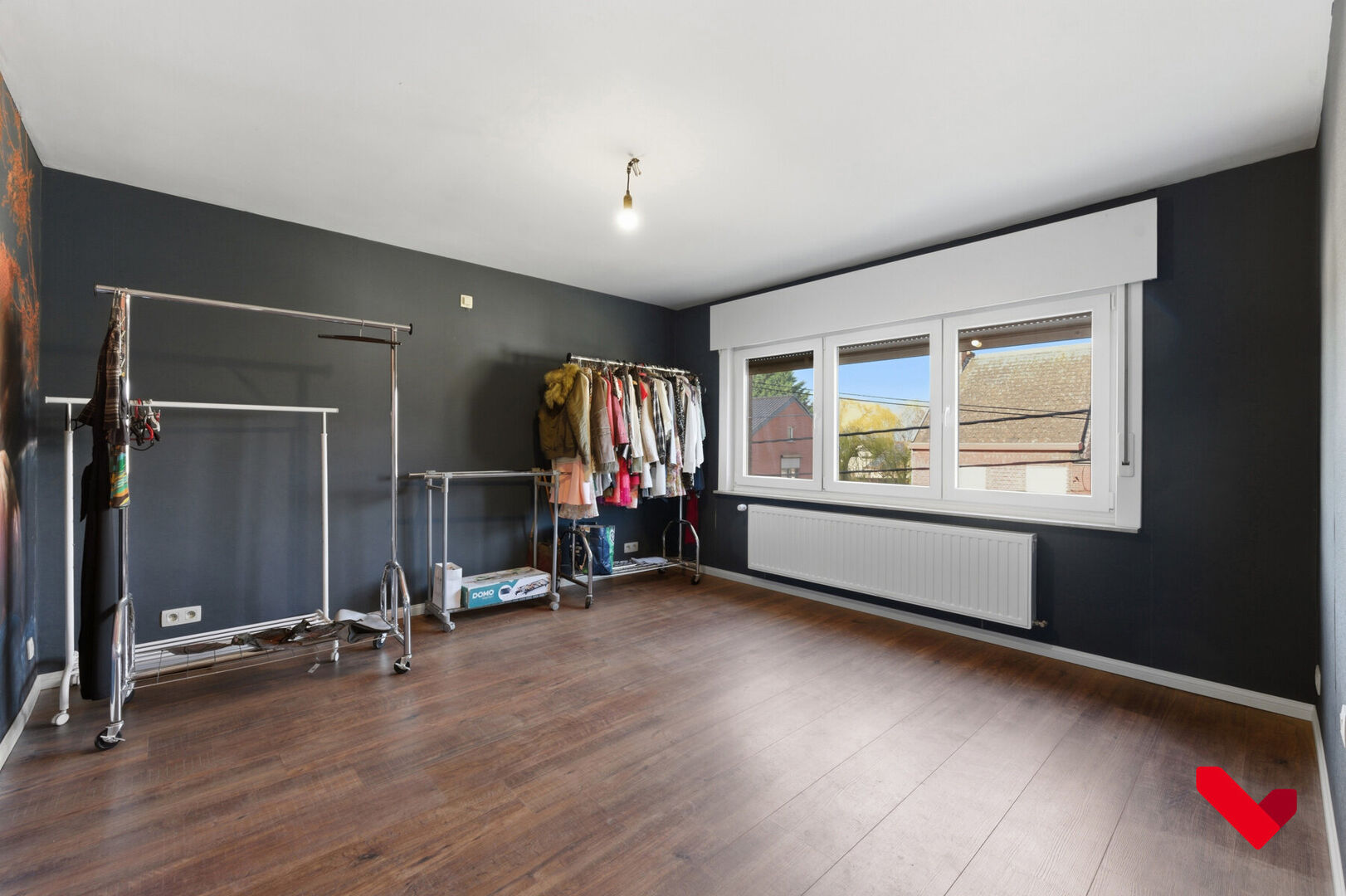 Via de trap bereiken we de eerste verdieping, waar drie ruime slaapkamers op ons wachten, elk met voldoende plaats voor een volwaardige inrichting.