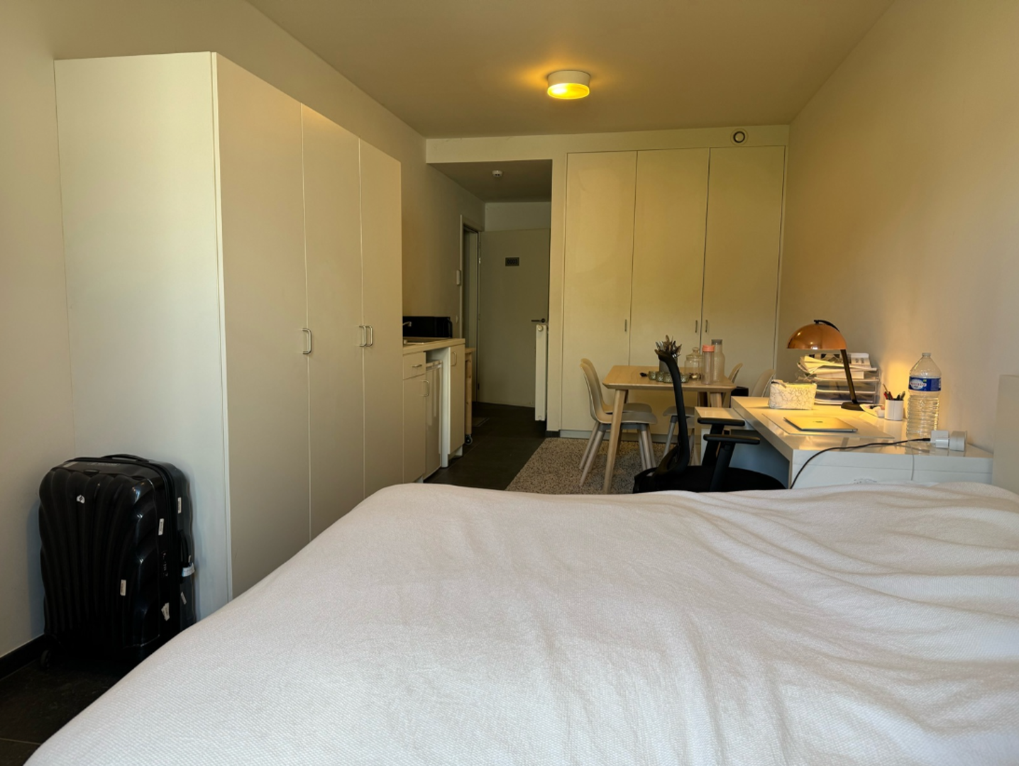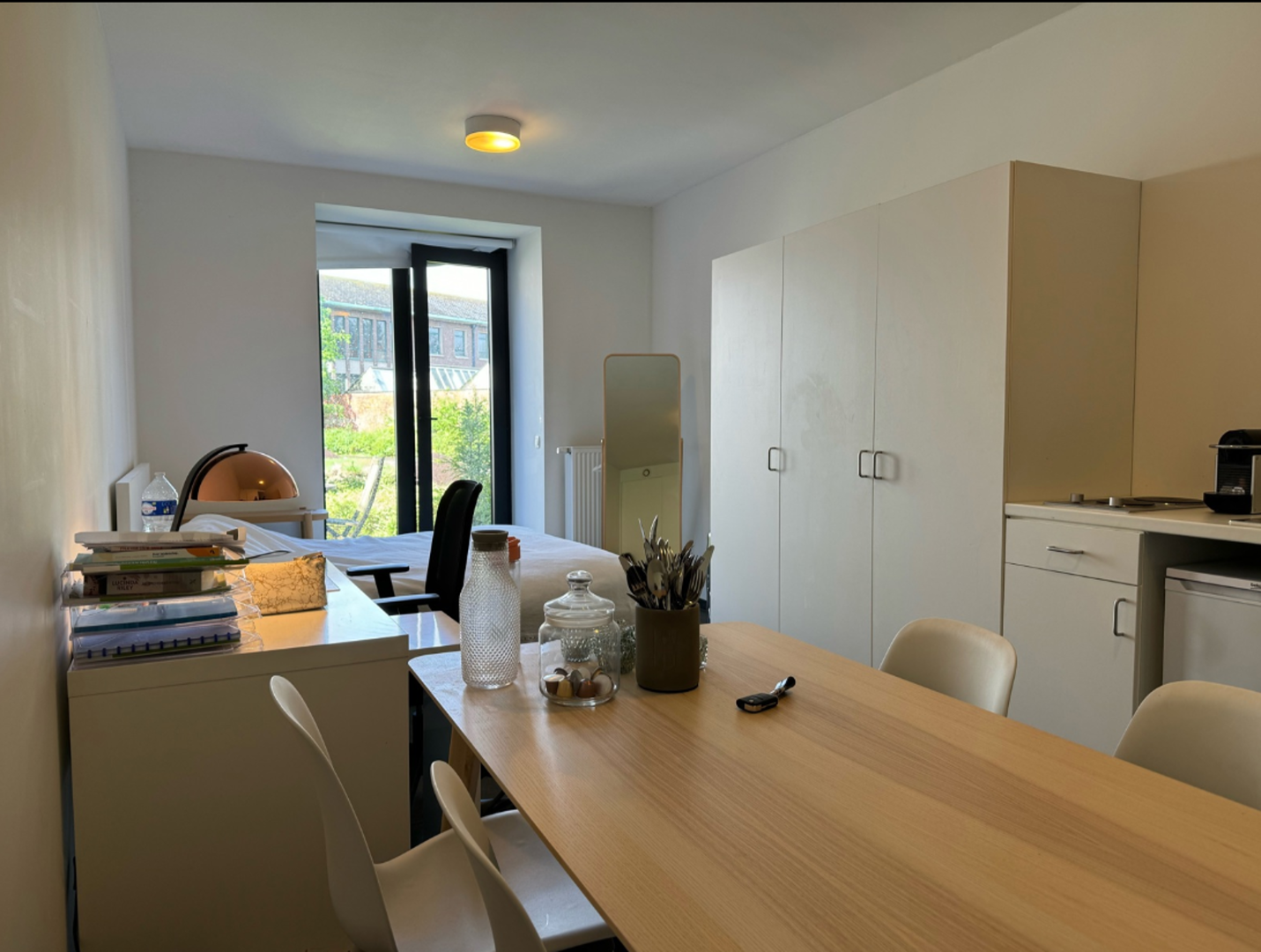 Luxueuze studio, van maar liefst 28 m² en met eigen privatief terras van 23m² in hartje Leuven nabij Grote en Oude Markt. Deze kamer bevindt zich op het gelijkvloers aan de achterkant en geniet van een prachtig uitzicht over de tuin. De studio heeft eigen sanitair (lavabo, wc en douche) en geïnstalleerde kitchenette. De studio zal ook volledig gemeubeld zijn met bureau, stoel, boekenrek, kast, dubbel bed, frigo en verduisterende rolgordijnen. Extra troef: Naast het hebben van uw eigen terras, mag elke student ook gebruik maken van de grote (7are!) gemeenschappelijke tuin. Top om te genieten of te studeren in het zonnetje, te midden het groen. Beschikbaar vanaf 15/09/2026. Huurprijs 870€ + 60€ provisie voor nutsvoorzieningen. Enkel voor studenten!