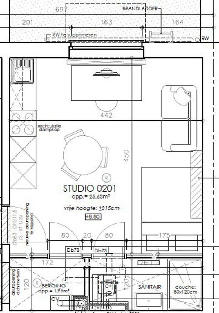 De stijlvolle leefruimte is voorzien van een moderne ingebouwde keuken met o.a. vaatwas en combi-oven. De warm aandoende badkamer is uitgerust met hangtoilet, wastafel met spiegel, inloopdouche en handdoekdroger. Bijkomend beschik je over een ruime berging in de studio voor optimaal wooncomfort.