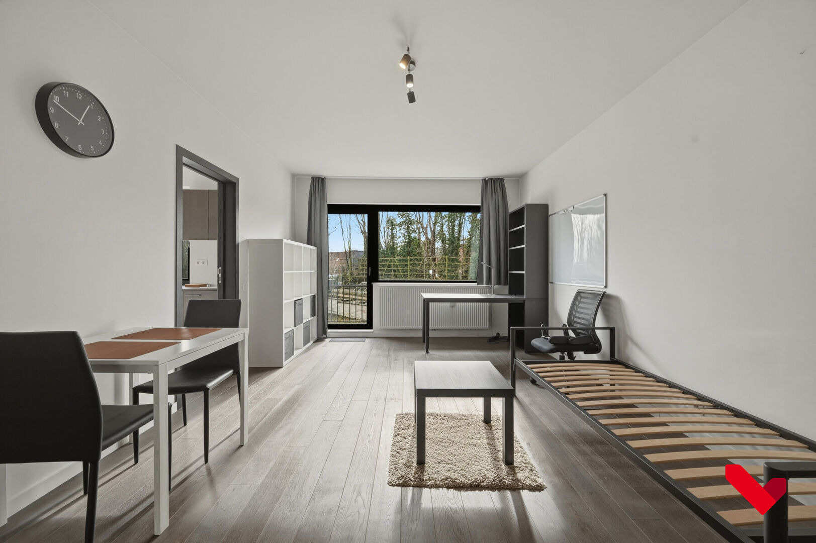 De studio is achteraan het gebouw gelegen, wat zorgt voor extra privacy en een aangename woonomgeving weg van het stadsverkeer. Bovendien beschikt het pand over een ruim terras – ideaal om in alle rust te genieten van een koffiemoment of een frisse neus. Tot slot is er een gemeenschappelijke fietsenstalling aanwezig – perfect afgestemd op het stadsleven in Leuven.